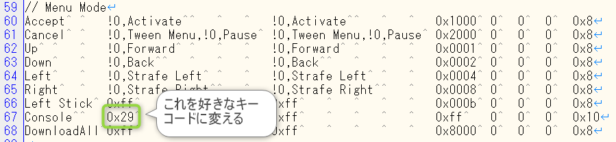 controlmap.txtの「Console」の部分を好きなキーに変えるだけです。
