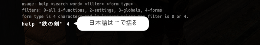 helpの検索結果をクリックすることで、それに適したコンソールコマンドを自動入力してくれます。