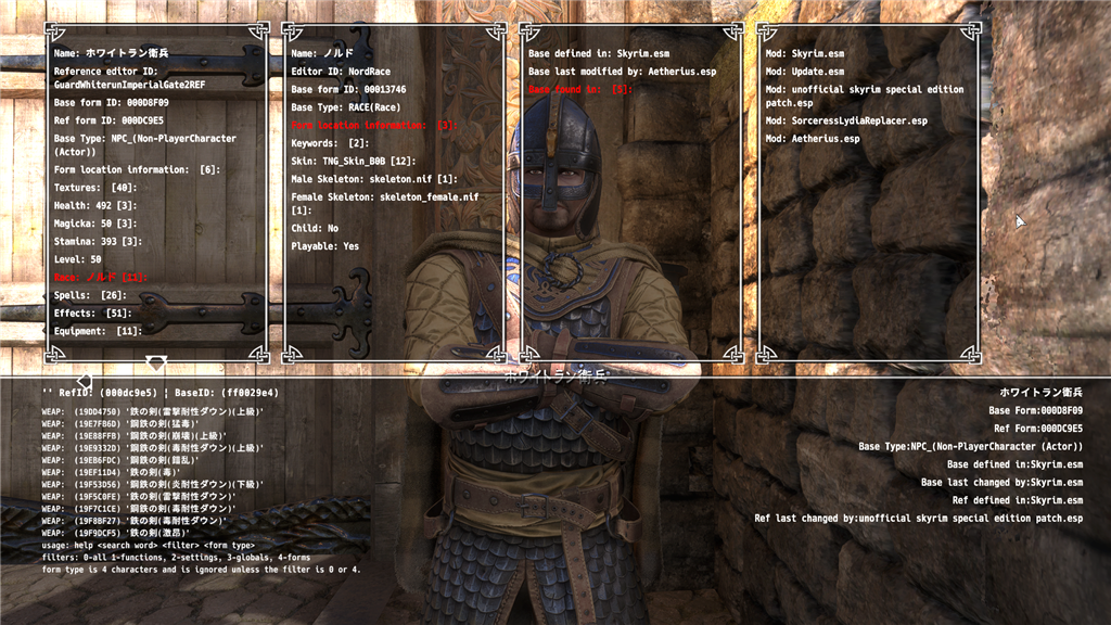 それと、このModにはコンソールコマンドをゲーム内で参照できるチートシートが付属しています。