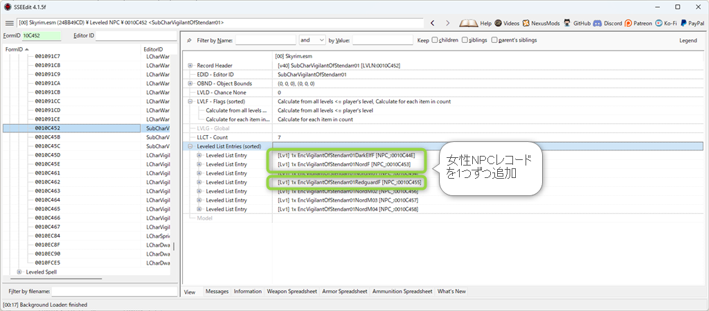 「10C44E」「10C453」「10C455」はもともと「10C452」に含まれている女性NPCのレコードで、さらにそれをもう一行増やすということになります。