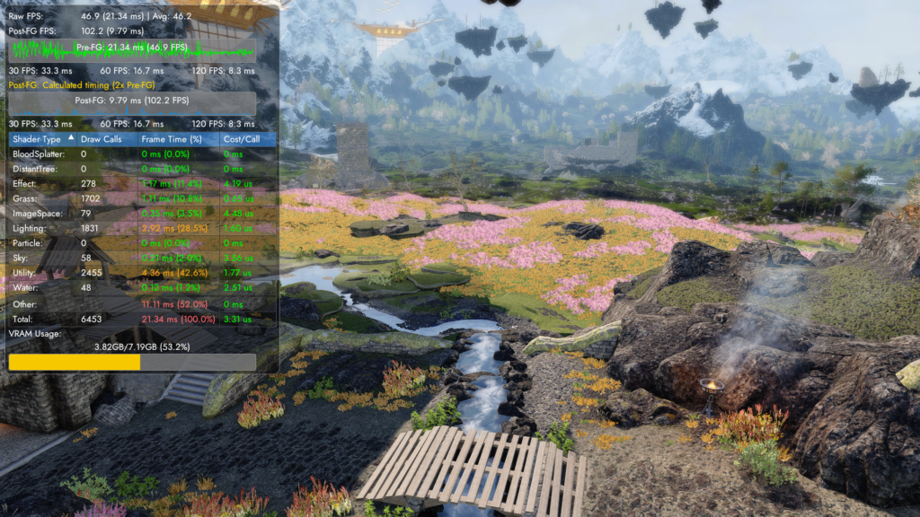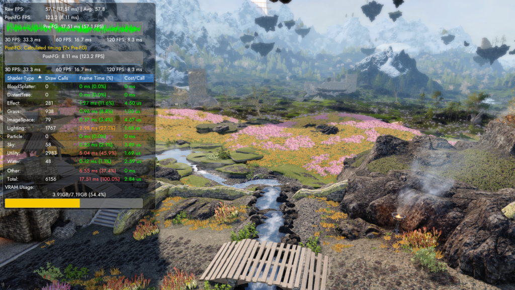 まずSkyrimPref.iniを見直し、フルモデルの描画範囲とLODの描画範囲を正確に決めるのがおすすめです。