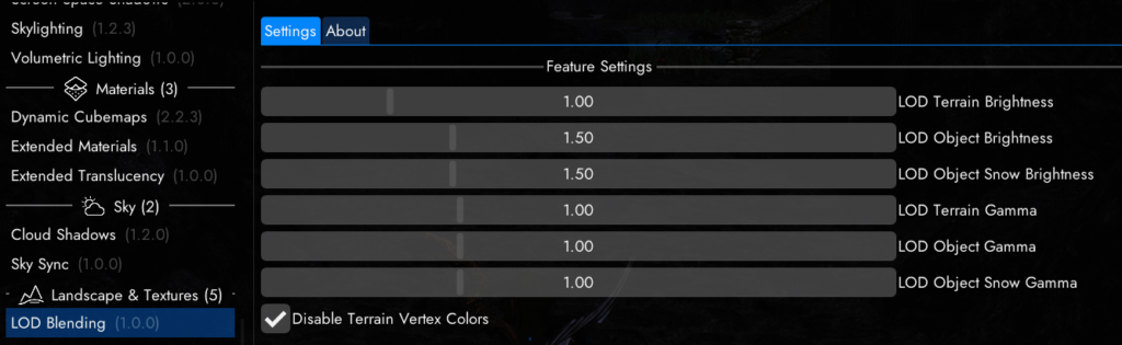 Community Shardersでは遠景の明るさをゲーム内で調整できるようになっています。