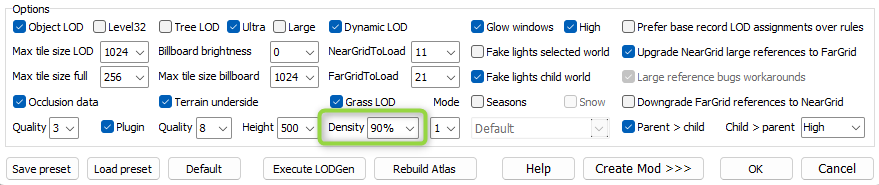 Density はLOD4の草密度を設定します。TexGenで草のLODモデルを作成した場合だけ設定できます。